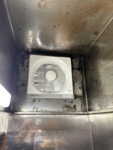 広島市内にお住まいのお客様より、台所の換気扇から異音がして吸い込みが悪いとご相談をいただきました。長年使用されたことで油汚れが蓄積し、経年劣化によるモーターの不具合が原因でした。